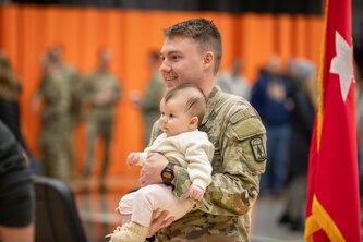 The Wisconsin Army National Guard’s 1st Battalion, 121st Field Artillery Regiment held a mobilization send-off ceremony in Hartford, Wis. Nov. 30, 2025. Soldiers assigned to Alpha Battery, 1-121 Field Artillery Regiment were honored in the ceremony before departing to the U.S. Central Command area of responsibility to provide High Mobility Artillery Rocket System (HIMARS) capabilities and work alongside strategic partners in the region.